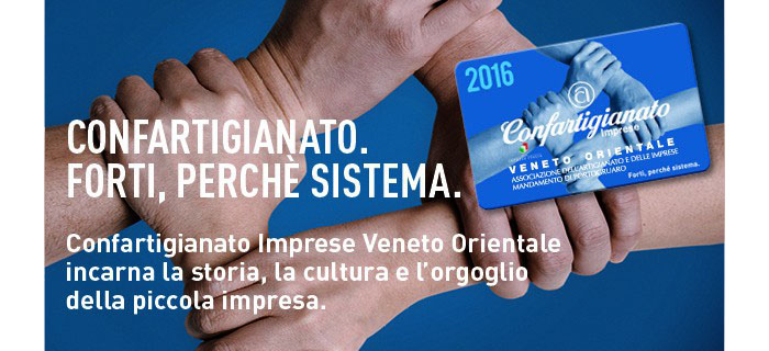 La Confartigianato Imprese del Veneto Orientale Associazione dell’Artigianato e delle Imprese Mandamento di Portogruaro fa parte di una delle 119 Associazioni territoriali che compongono il sistema Confartigianato italiano; una vera e propria forza positiva, costantemente impegnata per la tutela dei valori e degli interessi della imprenditorialità, della professionalità e della crescita economica.
